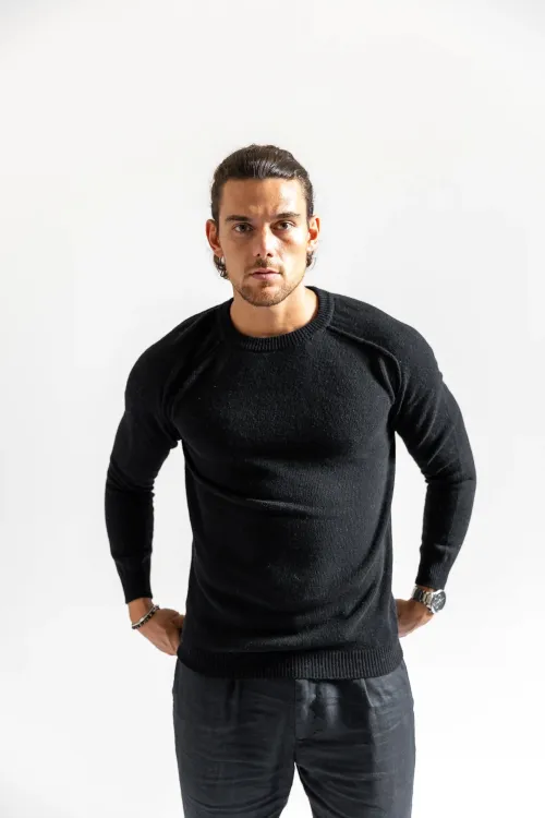 Solid color crew neck sweater in brushed kid mohair