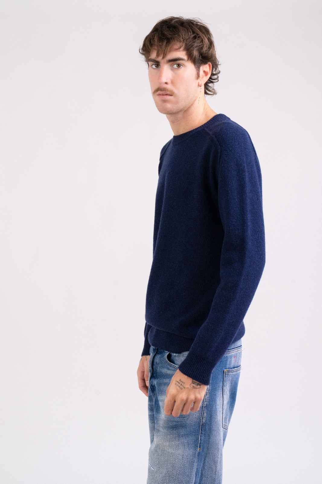 Crew-neck sweater with saddle sleeve and external stitching...