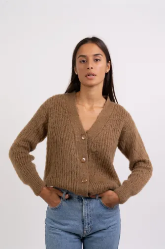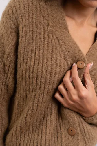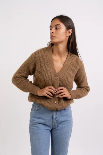 Cardigan corto in kid mohair color prugna