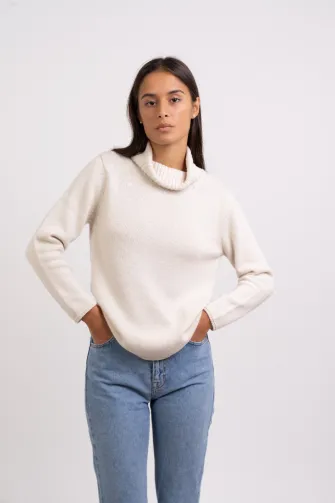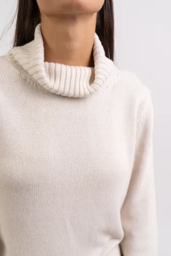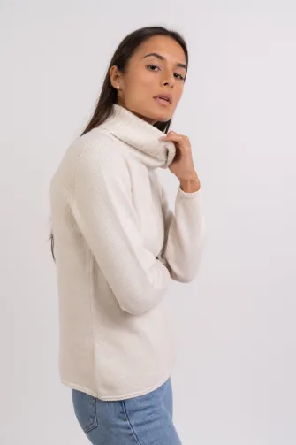 • Collo alto morbido largo 24cm ed alto 17cm in costa 2x2
