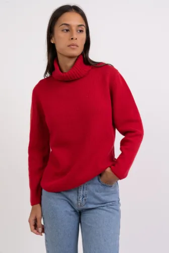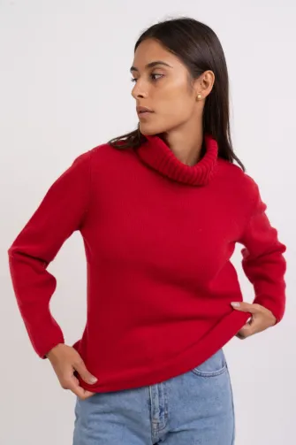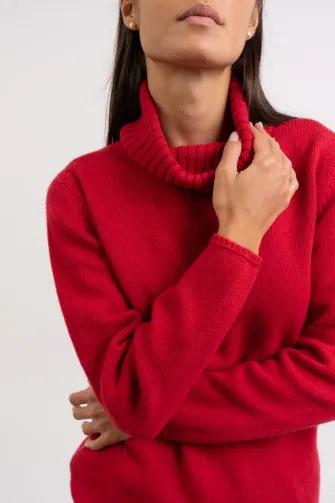 - Collo alto morbido largo 24cm ed alto 17cm in costa 2x2