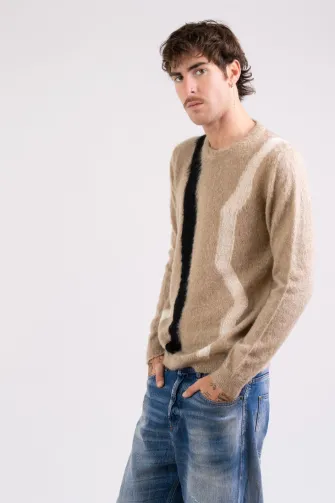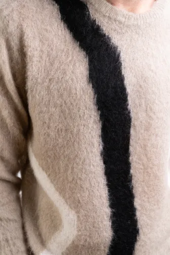 Maglia girocollo intarsio in kid mohair nero