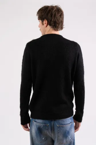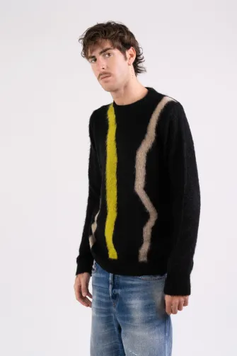 Maglia girocollo intarsio in kid mohair nero