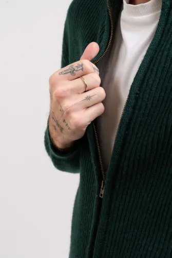 Giacca collo alto a maglia inglese sabbia
