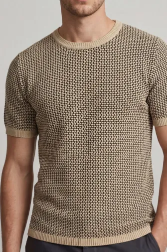 Girocollo 100% cotone nido d’ape fondo beje con contorno nero