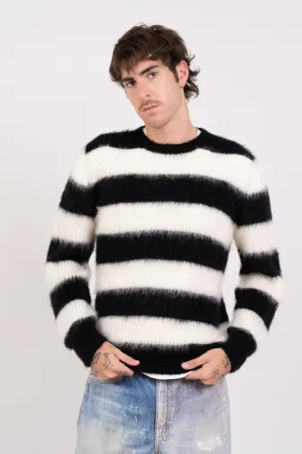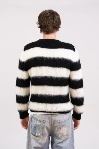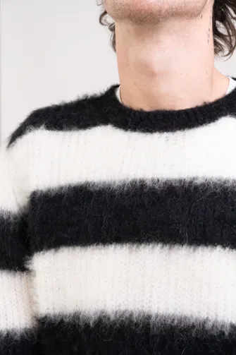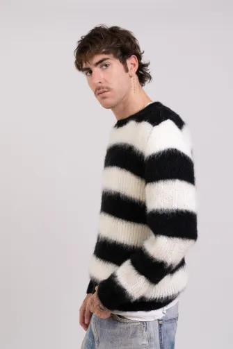 Maglia girocollo a righe in kid mohair color bianco-nero