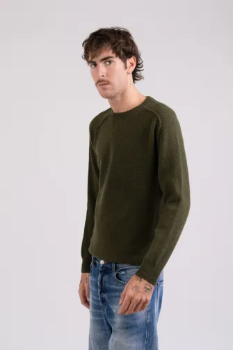 • Maglia girocollo con manica a sella e cuciture esterne sul giro