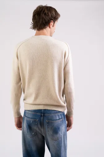 • Maglia girocollo con manica a sella e cuciture esterne sul giro