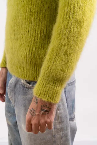 • Dopo il lavaggio, i capi vengono garzati manualmente per esaltare la naturale morbidezza del kid mohair