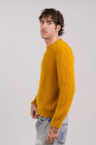 Maglia girocollo in tinta unita in kid mohair color panna